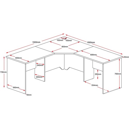 Rapidline Corner Workstation 1500W x 1500W x 600mmD 3 Piece Beech & Ironstone