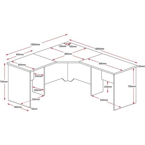 Rapidline Corner Workstation 1800W x 1500W x 600mmD 3 Piece Cherry & Ironstone
