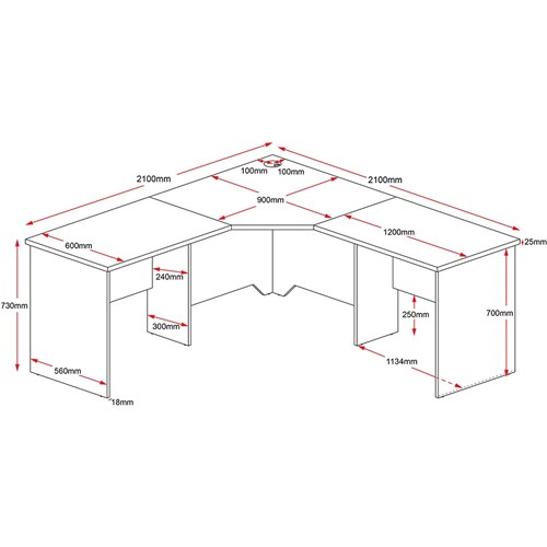 Rapidline Corner Workstation 2100W x 2100W x 600mmD 3 Piece Cherry & Ironstone