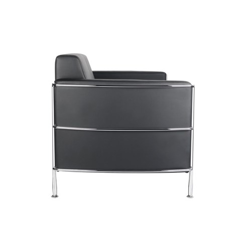 • Offers a contemporary seating solution with a chrome wrap-around frame and black PU leather upholstery.