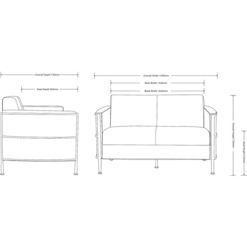 • Seat Width: 1030mm. Seat Depth: 500mm. Seat Back Width: 1040mm. Seat Back Height: 295mm. Floor To Seat Height: 435mm.