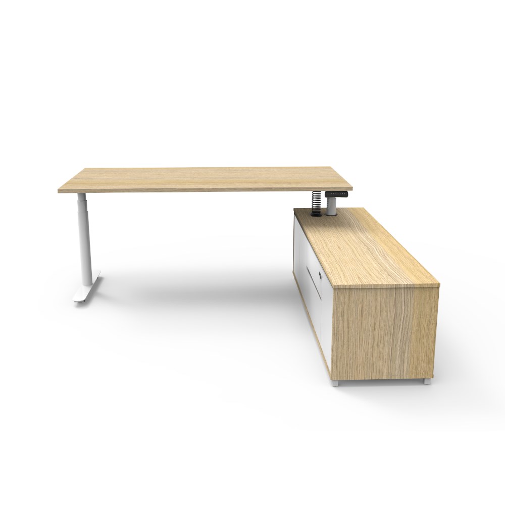 Rapidline Halo+ Executive Desk + RHS Cabinet 2020W x 1936D x 620-1270mmH Oak/White