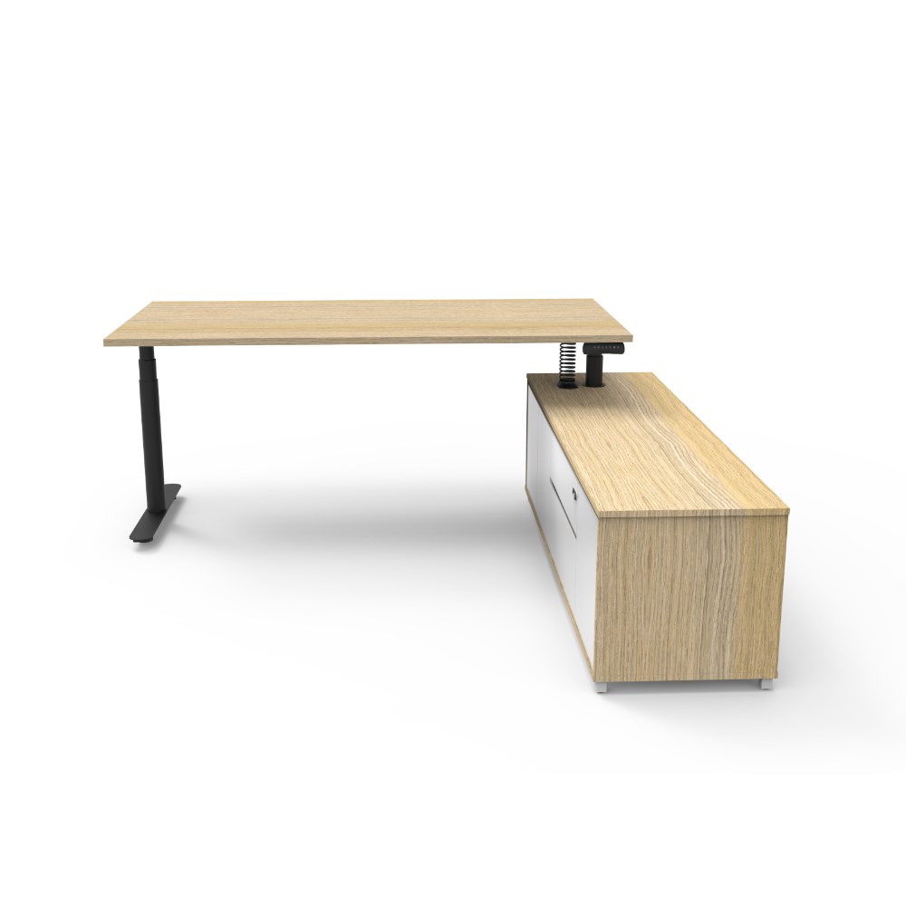 Rapidline Halo+ Executive Desk + RHS Cabinet 2020W x 2011D x 620-1270mmH Oak/Black