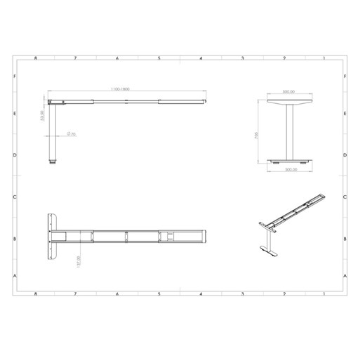 • Dimensions: 1100-1800W x 500D x 705mmH.