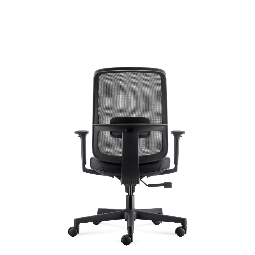 Lotto medium back operator chair. Medium back. Black with grey backed mesh and black fabric seat. Black PP and fiberglass mix frame.