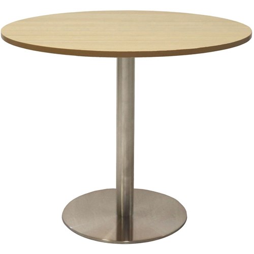 Rapidline Round Meeting Table 900mm Diam Top Natural Oak Stainless Steel