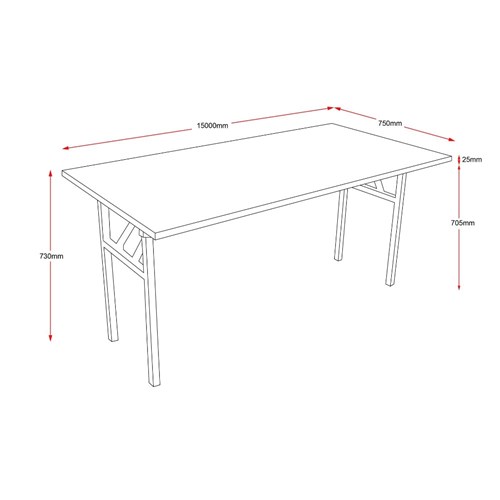 Rapidline Steel Folding Table 730Hx1500Wx750mmD Cherry Top Black Frame