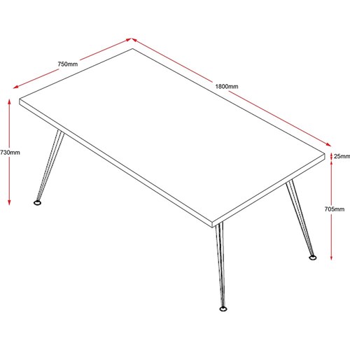 Rapidline Steel Frame Table 730Hx1800Wx750mmD Cherry Top Black Frame