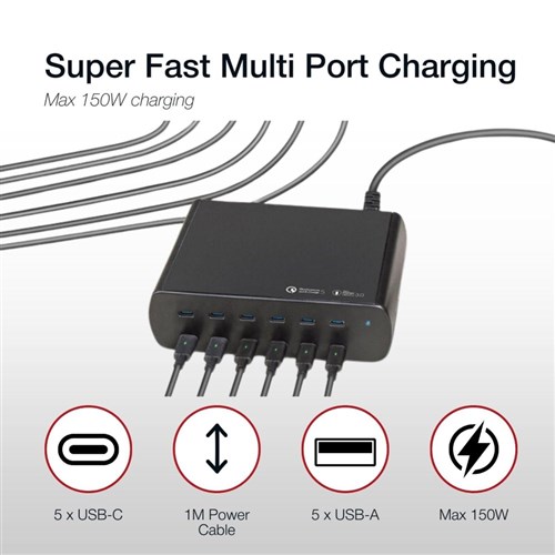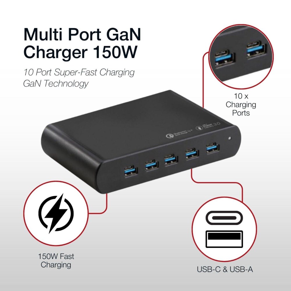 Shintaro 150W GaN 5 USB-A & 5 USB-C Multi Port Charger Black
