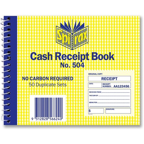 Spirax 504 Business Book Cash Receipt Quarto Carbonless Side Opening