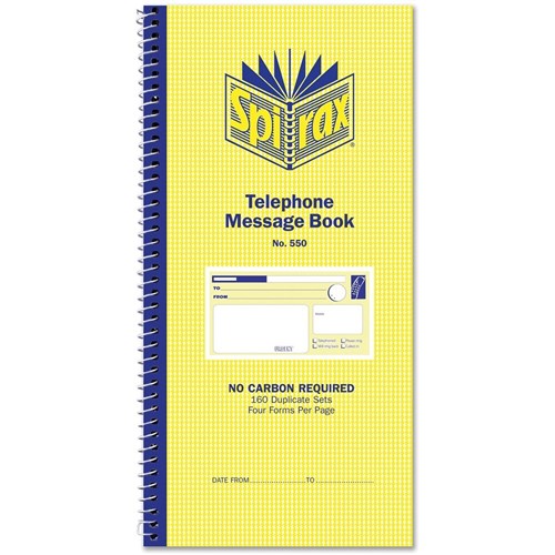 Spirax 550 Telephone Message Book Duplicate 160 Sets Carbonless Side Opening