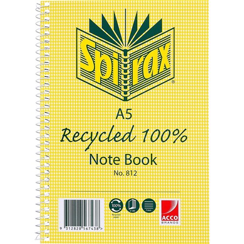 Spirax 812 Recycled Notebook A5 Ruled 120 Page 70% Recycled Side Bound