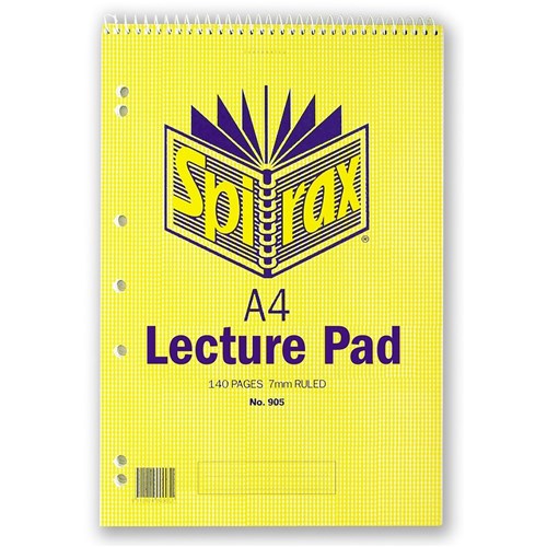 Spirax 905 Lecture Book A4 7mm Ruled 60gsm 140 Page Top Opening