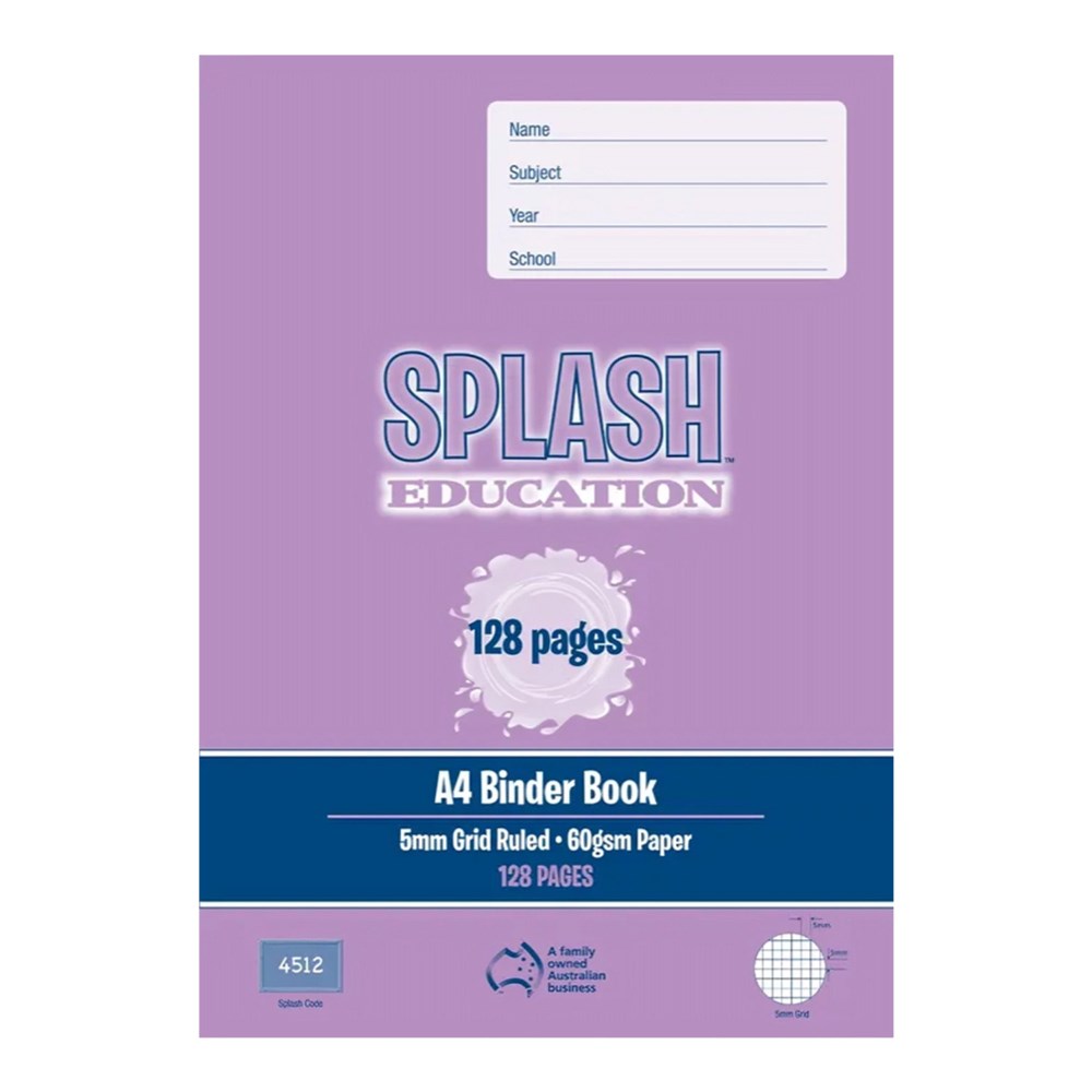 Splash Education Grid Binder Book A4 5mm Grid 128 Page