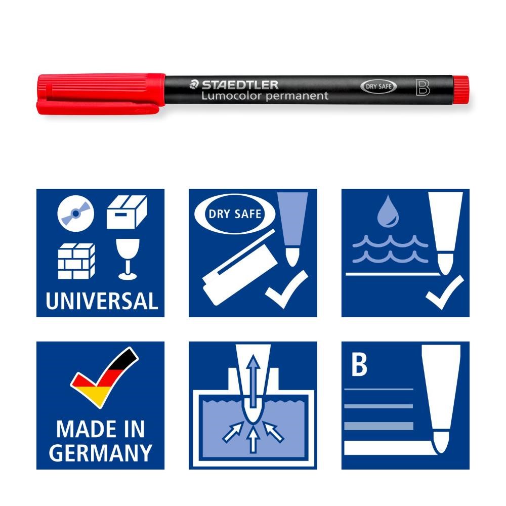 • Excellent smudge-proof and waterproof qualities on almost all surfaces. Dries in seconds, therefore ideal for left-handed users.