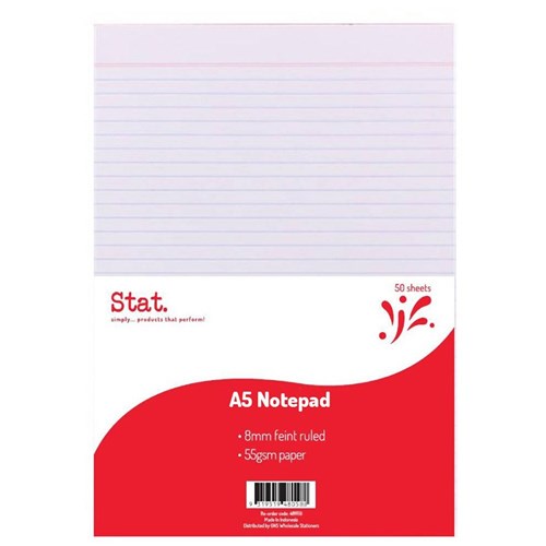 Stat Notepad A5 7mm Ruled 55Gsm White 50 Sheet Writing Pad