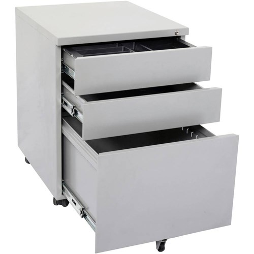 Steel Mobile Pedestal 2 Drawer 1 Filing Drawer 610Hx450Wx 472mmD Precious Silver