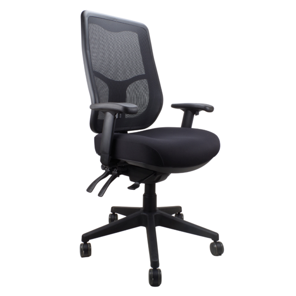 STL Merida High Mesh Back Chair & Arm Rest 160kg/5yr Black Fabric