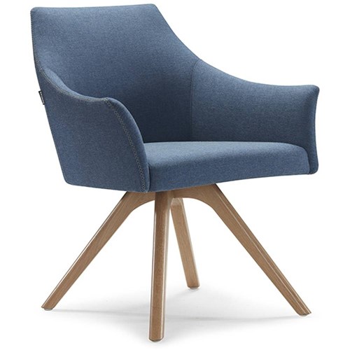 Tulip Tub Chair Timber Base Blue Fabric Seat Blue