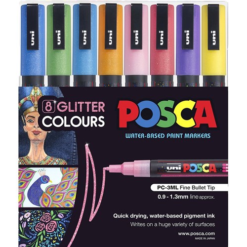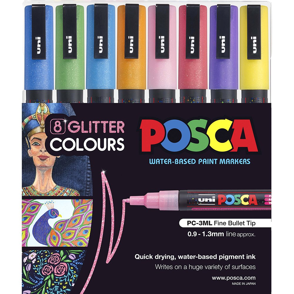 Uni Posca Paint Marker PC-3M Fine 1.3mm Bullet Tip Glitter Assorted Set of 8