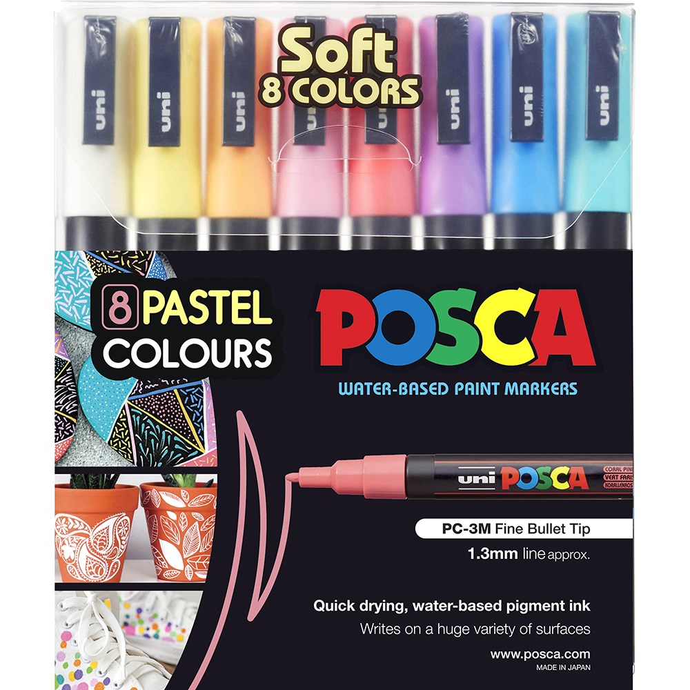 Uni Posca Paint Marker PC-3M Fine 1.3mm Bullet Tip Pastel Assorted set of 8