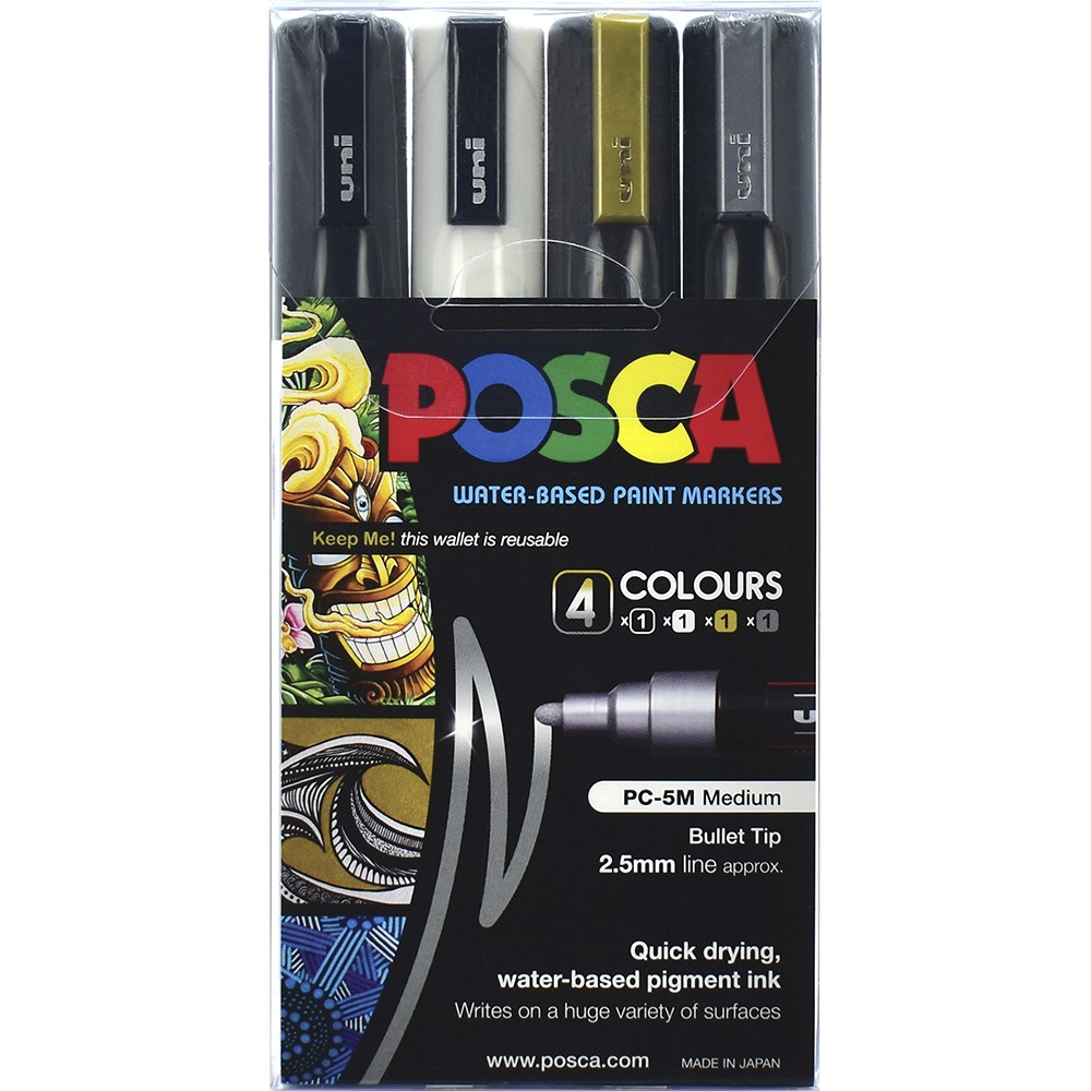 Uni Posca Paint Marker PC-5M Medium 2.5mm Bullet Tip Assorted Set of 4