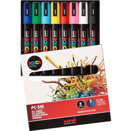UNI Posca Poster Marker PC-5M 2.5mm Medium Bullet Assorted Pack of 8