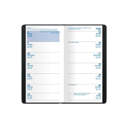 Upward Standard Pocket 148 x 74mm Week To View Black 2969450