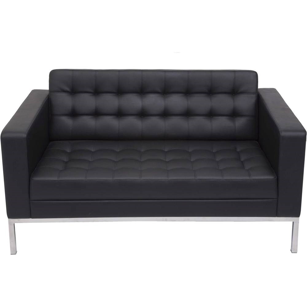 Venus Two Seater Lounge Stainless Steel Base Button Finish Black PU Upholstery