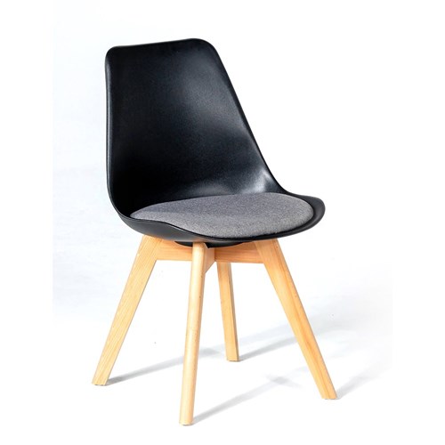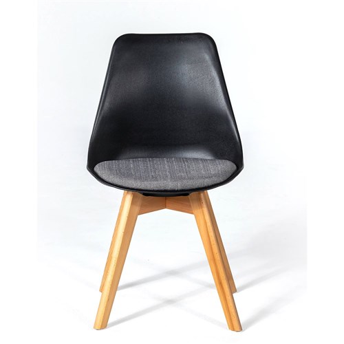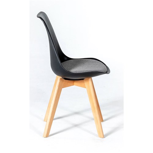 VIRGO Chair - Oak Coloured Timber Leg, Black Polypropylen Shell, Grey Seat Pad