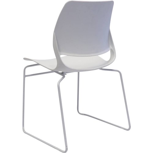 Vivid Meeting Chair White Metal Sled Base White Poly Shell