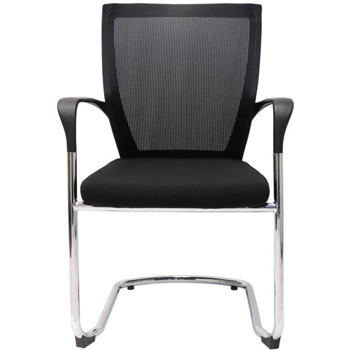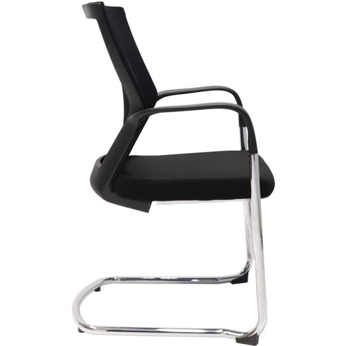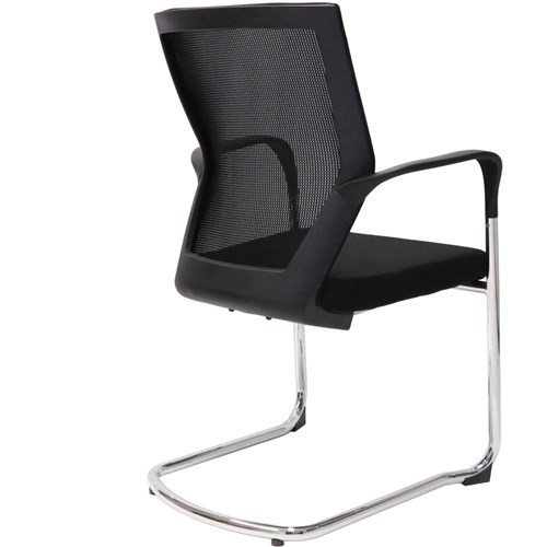 WMCC Visitor Chair Mesh Back Chrome Cantilever Frame Black Padded Fabric Seat