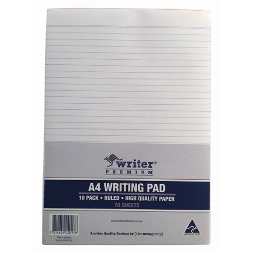 Writer A4 Premium Bond Pad 70 Sheet Ruled 2 Sides White Pack of 10
