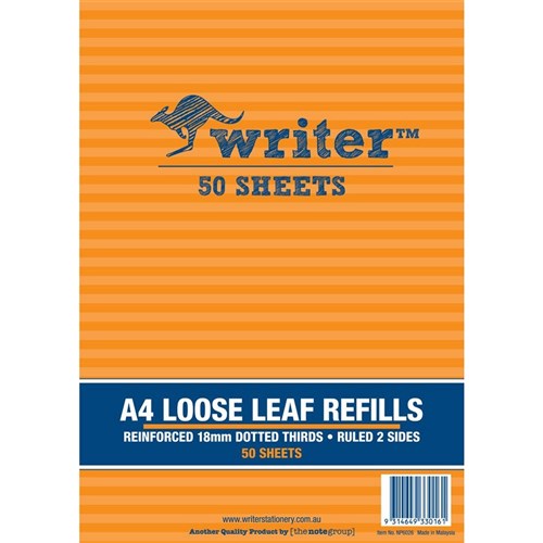 Writer Binder Refills A4 18mm Dotted Thirds Pack of 50