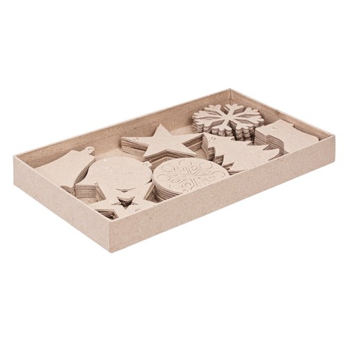 • A selection of Papier Mache shapes to decorate for Christmas.